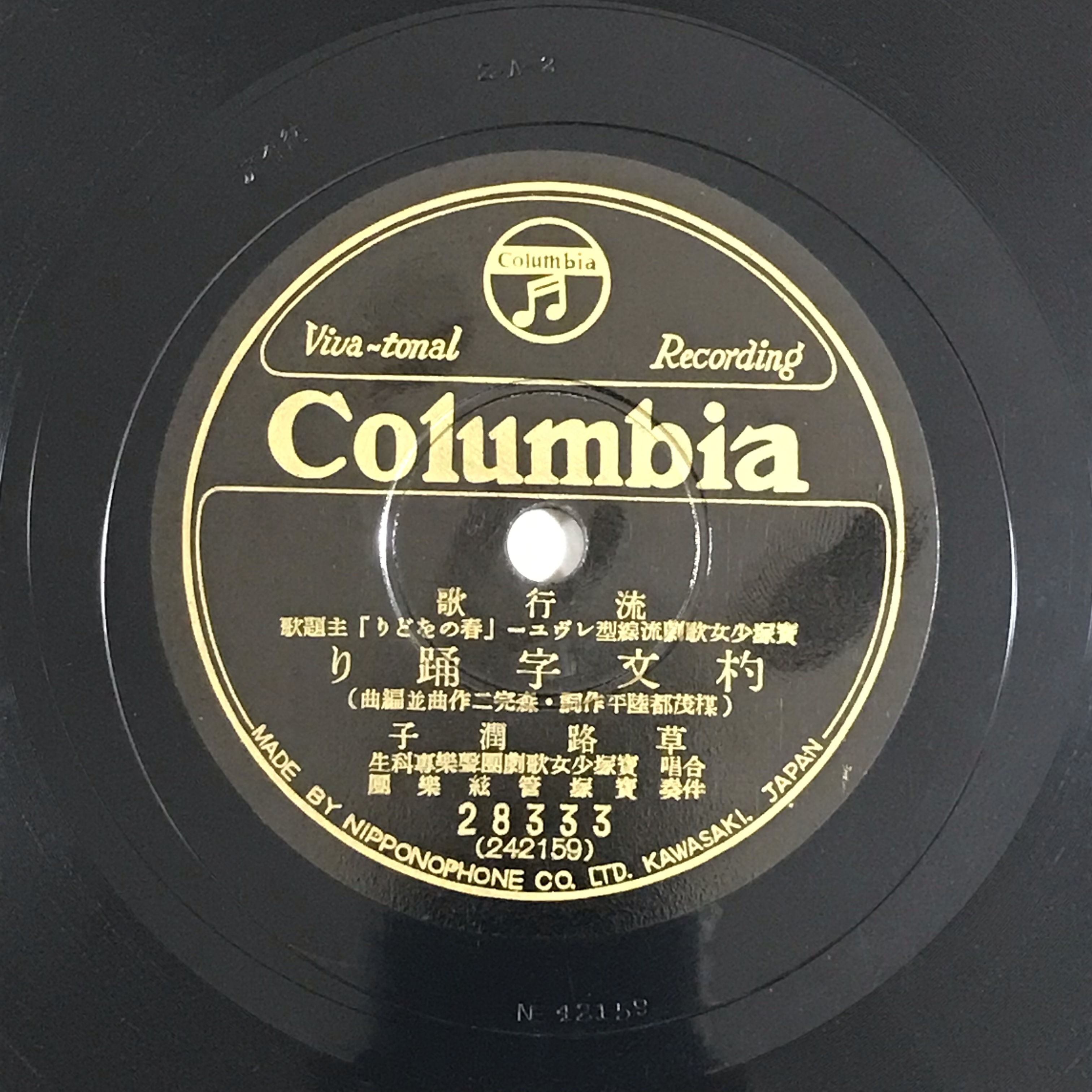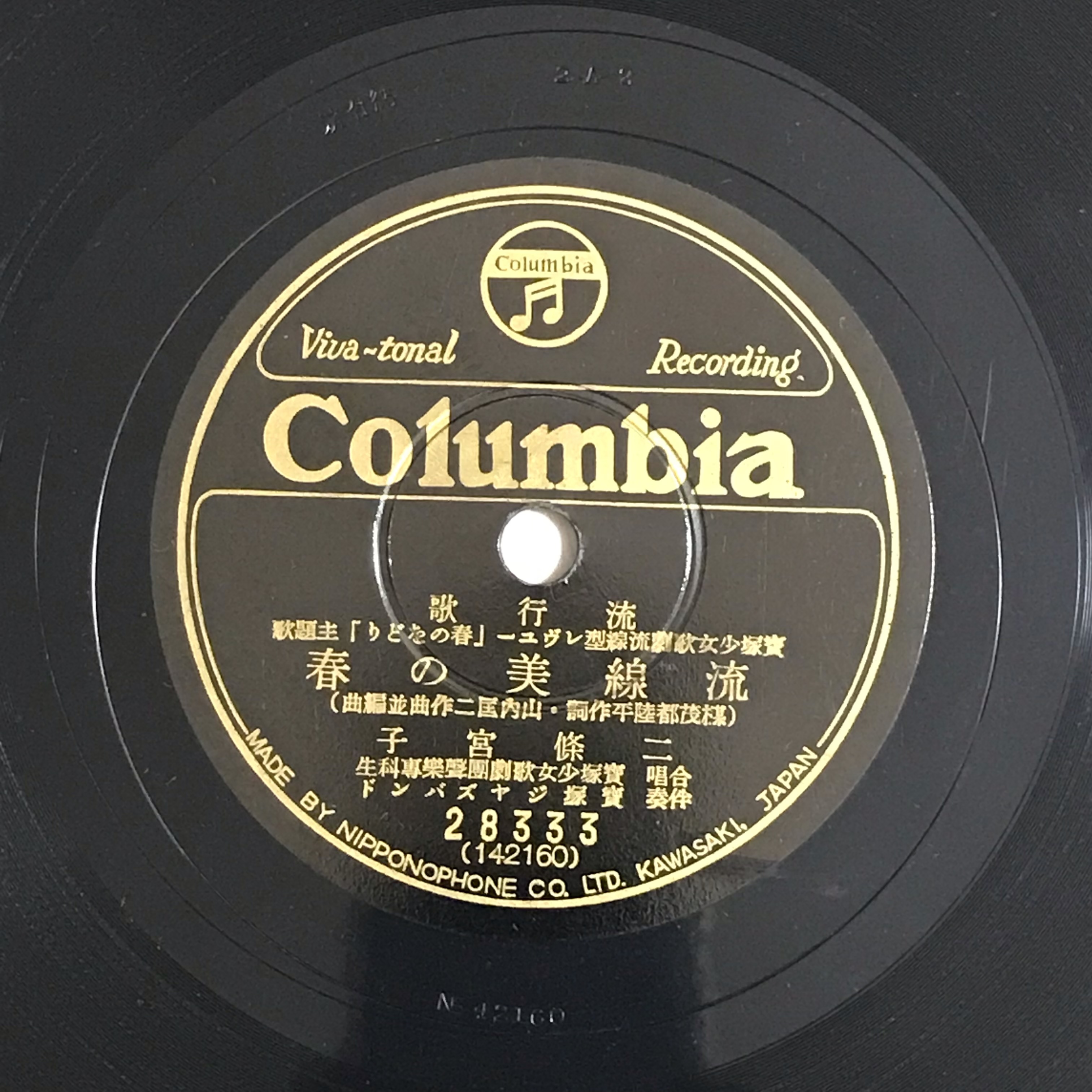 レヴュウ はるのおどり(りゅうせんび) 春のをどり(流線美) 組名星組 公演日昭和10年04月01日〜昭和10年04月30日 曲名 レーベル レコード番号 マトリクス 流線美の春 Columbia 28333-A NE42160 作詞:楳茂都陸平 作曲:山内匡二 演奏: 歌手: 二條宮子 声楽専科生 曲名 レーベル レコード番号 マトリクス 杓文字踊り Columbia 28333-B NE42159 作詞:楳茂都陸平 作曲:森完二 演奏: 歌手: 草路潤子 声楽専科生 録音日:昭和10年03月15日 発売日:昭和10年5月20日 脚本:楳茂都陸平 演出:楳茂都陸平 音楽: 出演: 備考:ここから大劇場再開。